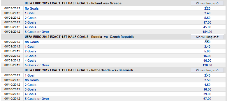 You may click on "Today" > Soccer > Outright event and place your bets-------------------------------------------------------------1.Exact First Half Goals*"Exact First Half Goals" means betting to predict the total number of goals scored by both teams by the end of the first half. ( first 45 minutes)Note: If an event is abandoned before the end of the first half, all bets are considered void.